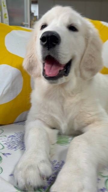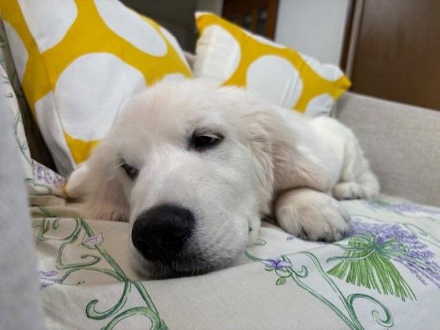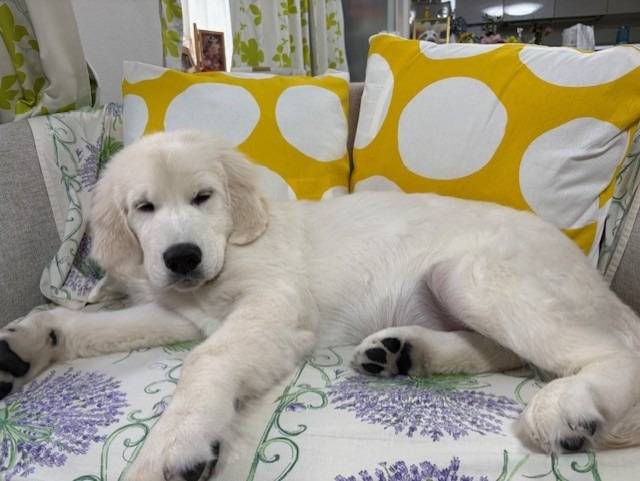 泥だらけですが、フィビを産室に連れてきました。側にいたいようで、一晩中ほえていましたから可哀そうですもの。