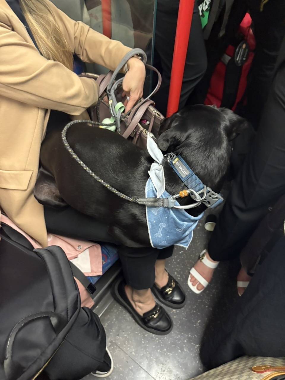 英国の日常では、混んでいる電車でも、わんちゃんを乗せられるのですね。