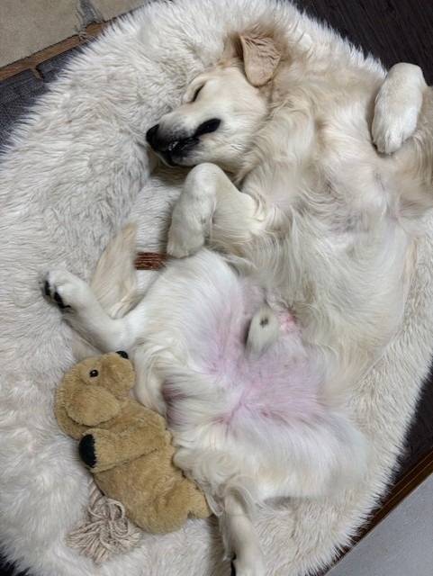 相変わらずへそ天全開のアーサー君38・5kg。立派です。いい犬ですよねぇ・・・